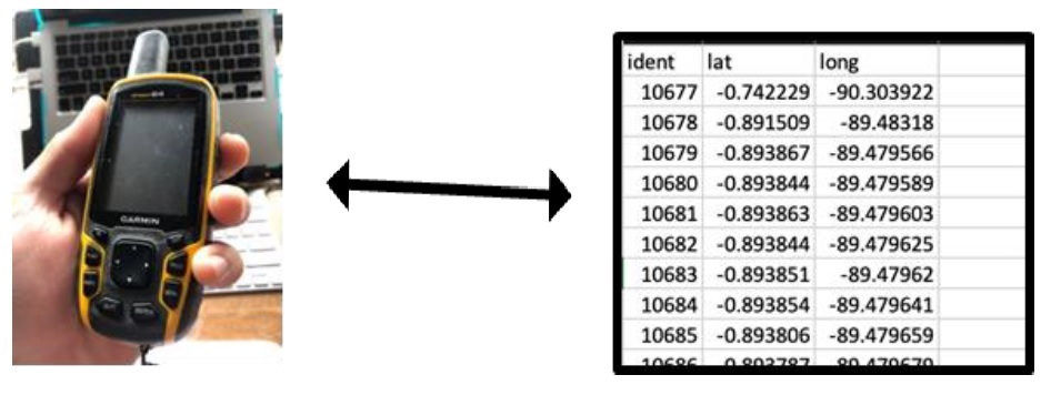 Cargar coordenadas con etiquetad de código (id de plantación) a una unidad GPS