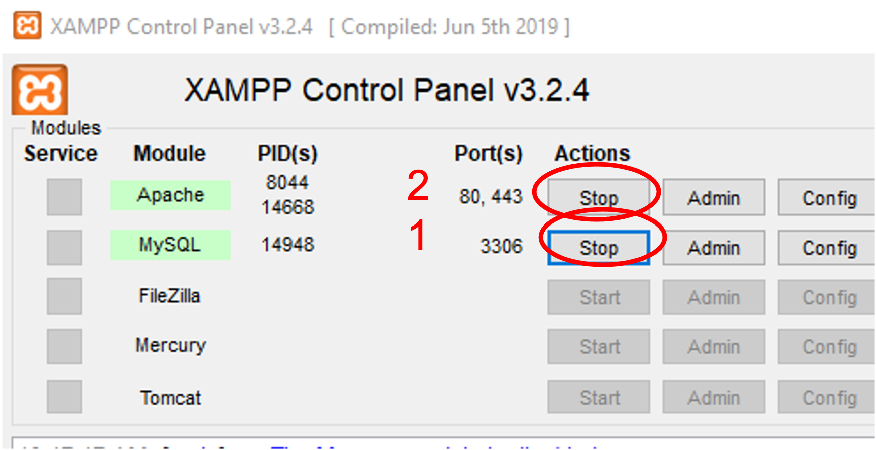 Al acabar de utilizar la galería se debe apagar los servidores utilizando el programa XAMPP.