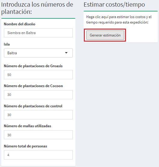La siguiente herramienta sirve para planificar las salidad de campo con activodades de siembra y poder estimar los costos y tiempo que se debe invertir basado en el número de personas y la magnitud de la siembra.